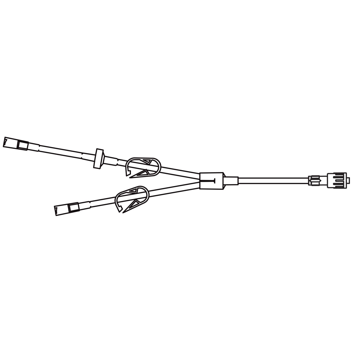 Backcheck Valve Extension Set, Y-Type, 2 Female Luer Lock Connectors, Backcheck Valve, 2 On/Off Clamps, Distal SPIN-LOCK Connector, DEHP & Latex Free , 1.8mL Priming Volume, 10"L, 50/cs (LF) (80 cs/plt) (Rx) (Continental US+HI Only)