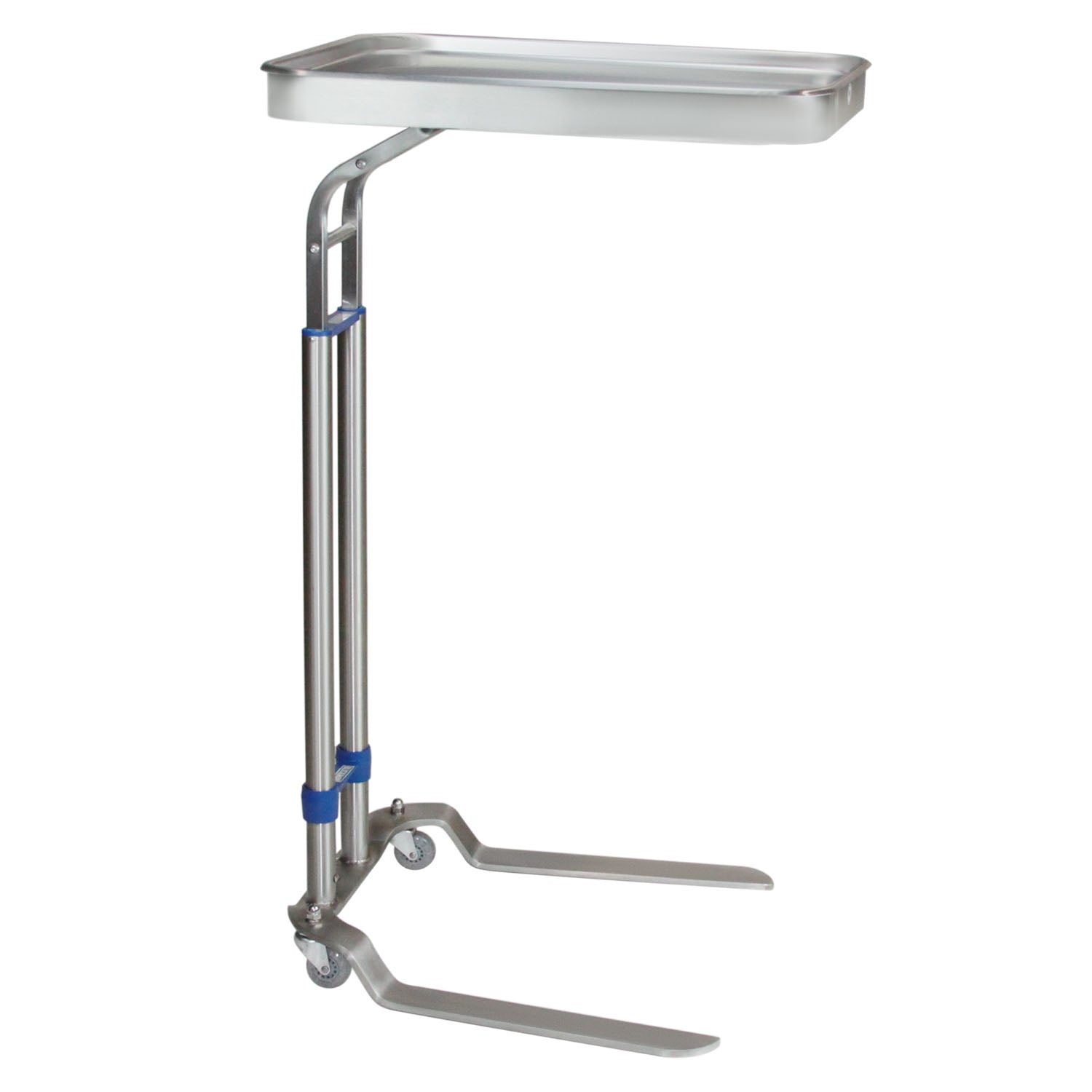 Heavy stainless-steel mayo stands with a weighted base under a stainless-steel housing for maximum stability and caster-protection. Lighter-weight Mayos in stainless-steel and chrome serve alternate sites, such as exam rooms and emergency rooms, with a variety of sizes and bases.