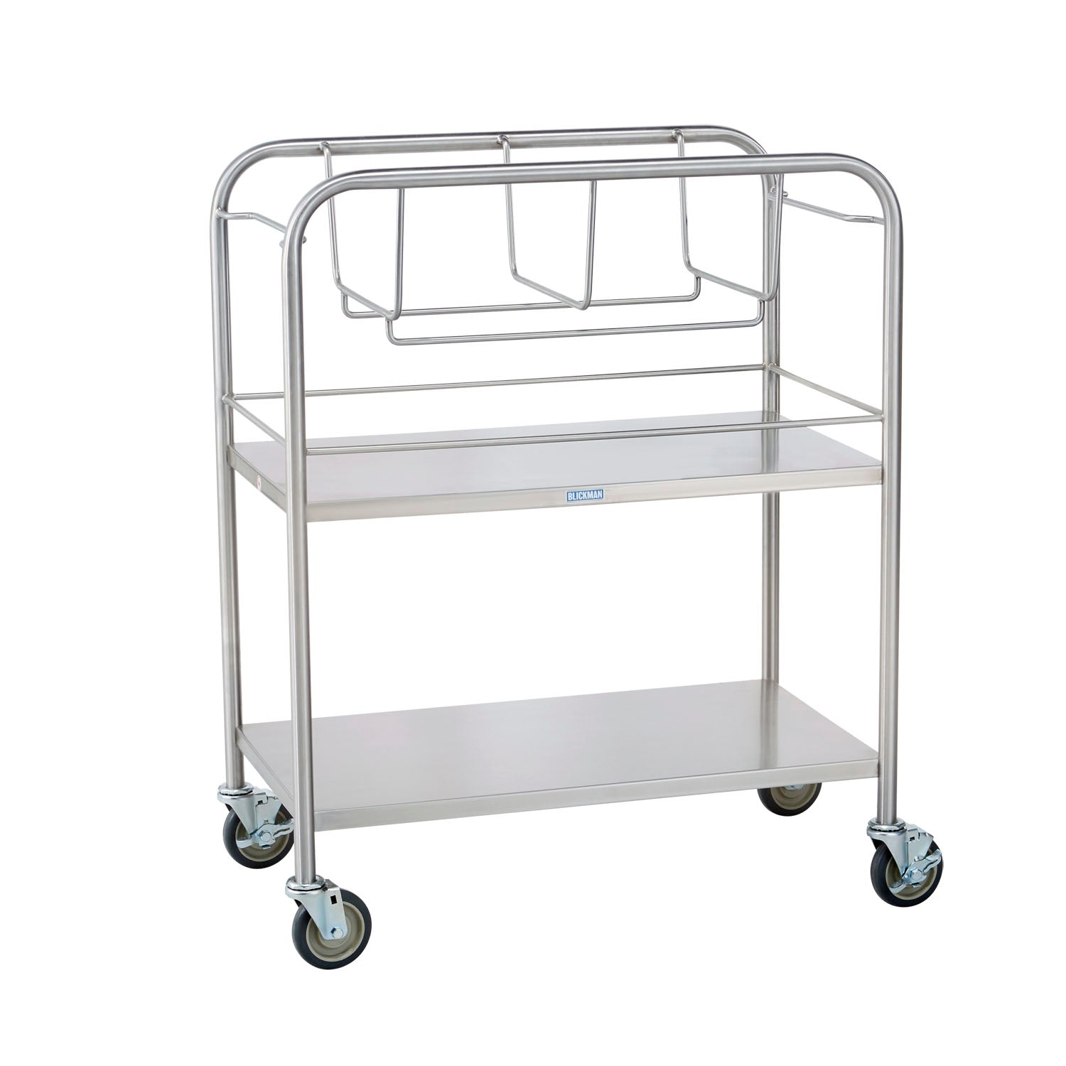 Blickman’s inverted “U-frame” bassinet design, combined with bassinet basket, provides a stable and safe resting place for newborns. Shelves, drawers or cabinets housed underneath the basket provide additional storage space as well as add strength and rigidity. Ball-bearing swivel casters, with two brakes, transport baby comfortably and safely. The clear acrylic infant basket has a card-holder for baby ID and rests in specially-formed support rods so it can be set in the flat or Trendelenburg position.