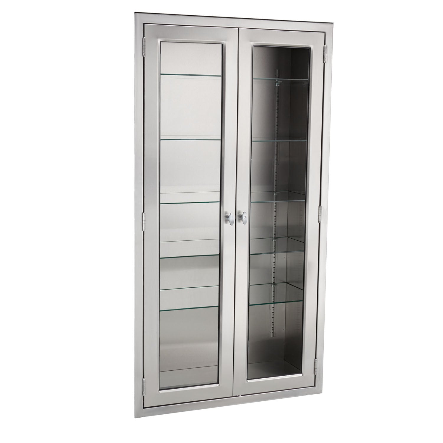 Equipment and Supplies Cabinet 47"W x 60"H x 18"D Supplies Cabinet, Glass Door, Stainless Steel Adjustable Shelves (3)