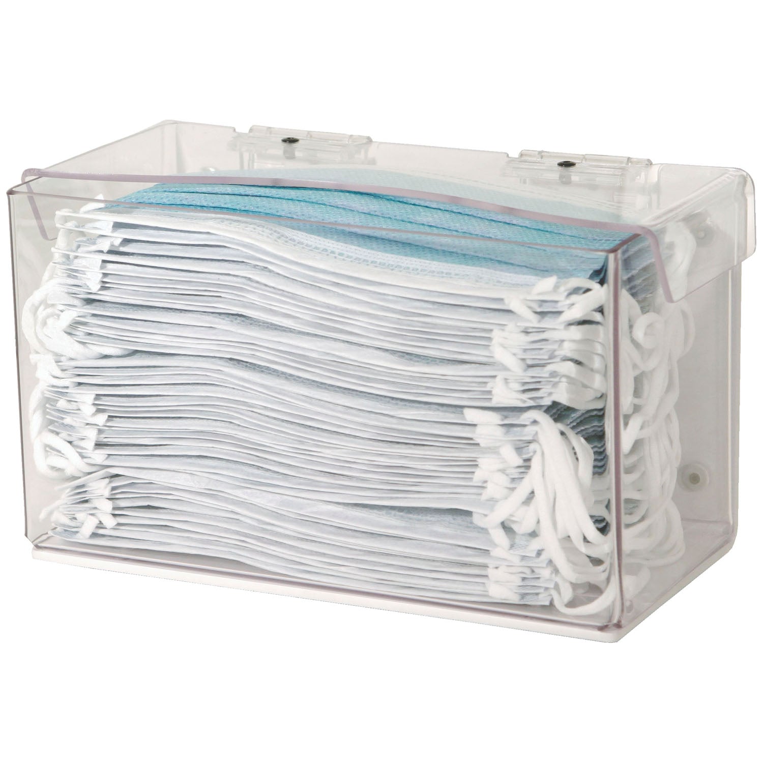 Face Mask Dispenser, Earloop Style, Holds One Box of Earloop Face Masks in Bulk Quantity, Hinged Lid, Keyholes For Wall Mounting, White ABS Plastic & Clear PETG Plastic (Made in USA)