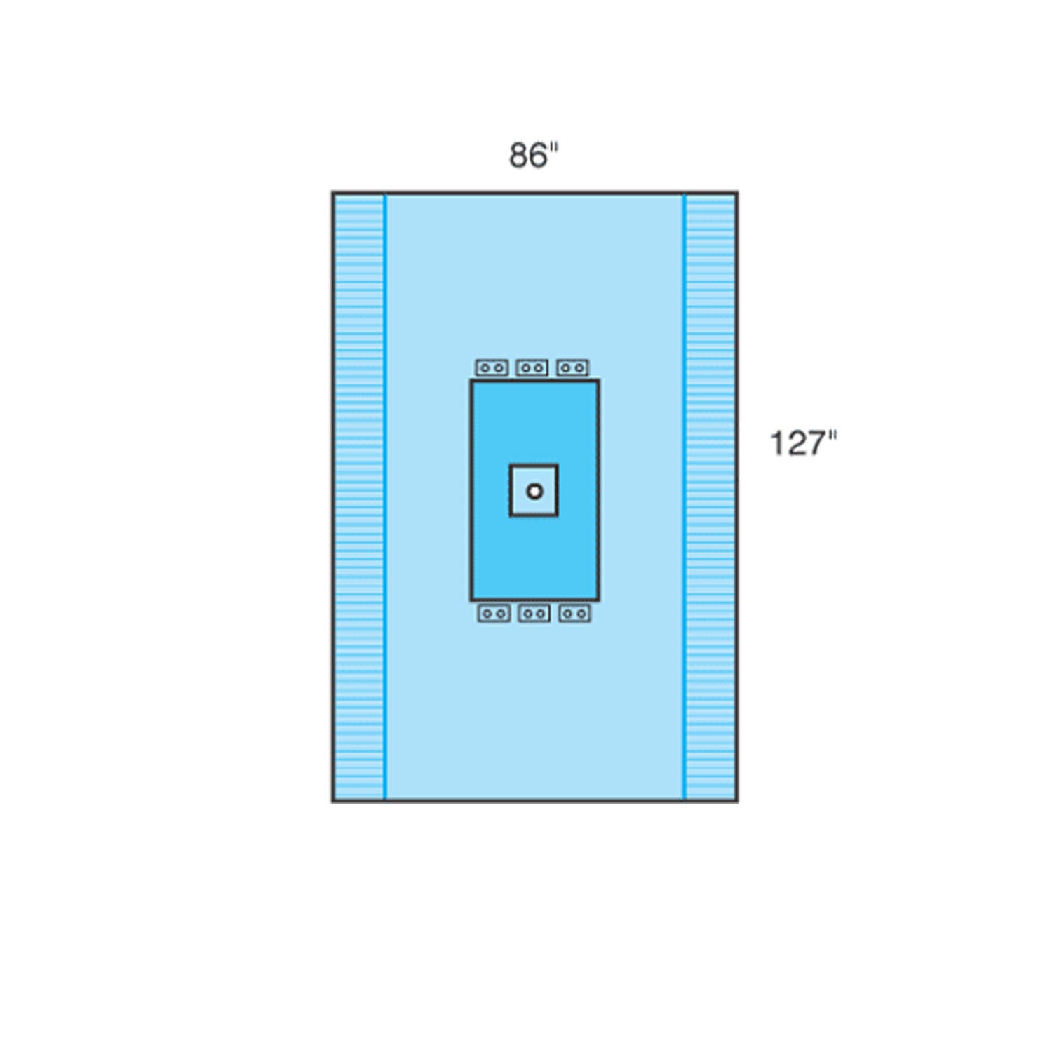 Packs include: Tiburon® extremity drape with 28" x 46" Iso•Bac® absorbent reinforcement; 2 1/2" circular elastic fenestration; cord-holding tabs; suture bag; mayo stand cover, reinforced poly, 23"W; outer wrap/reinforced poly table cover, 50" x 90", with 30" x 90" reinforcement'