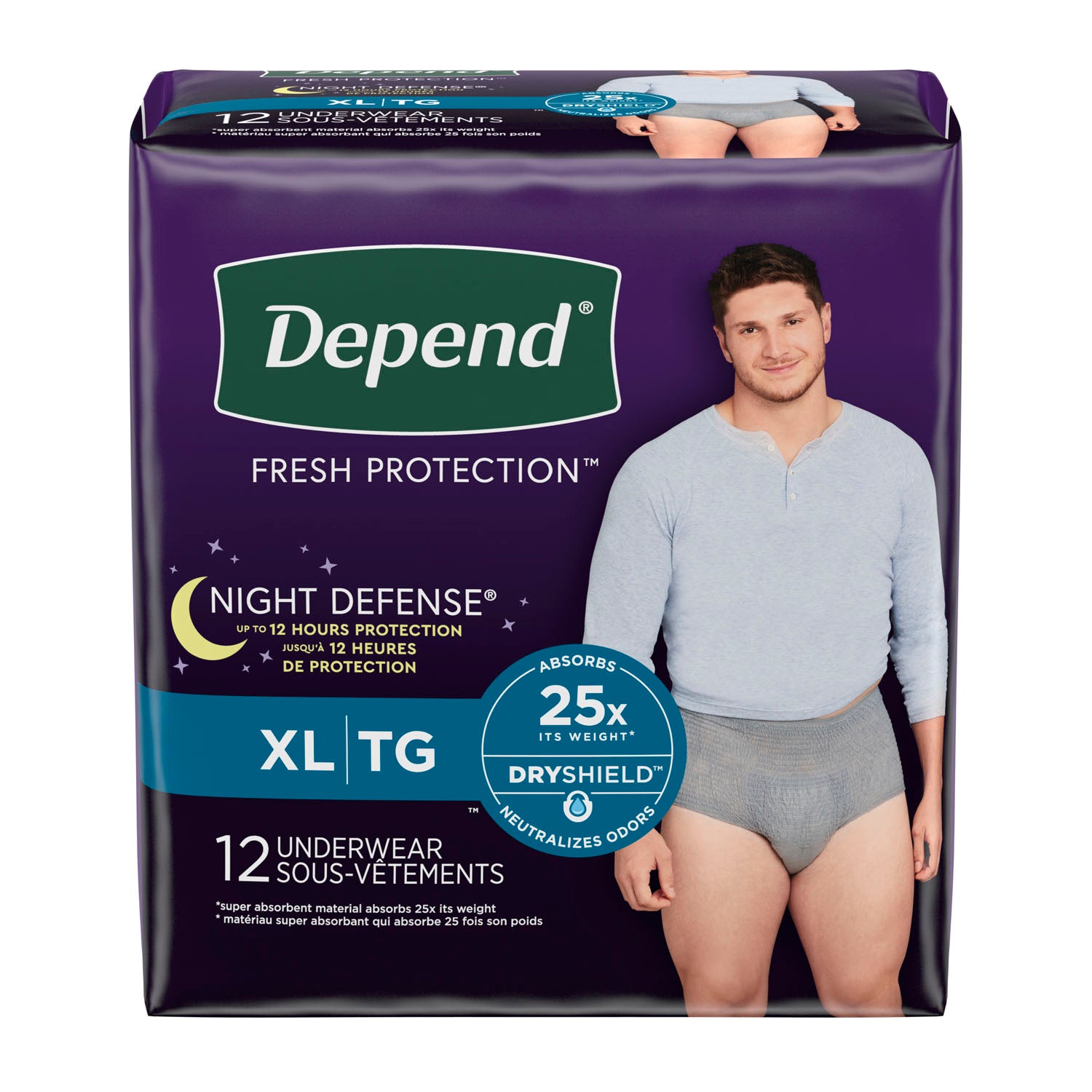 Depend Night Defense Overnite Underwear, Male, Grey, X-Large, 12/pk, 4pk/cs