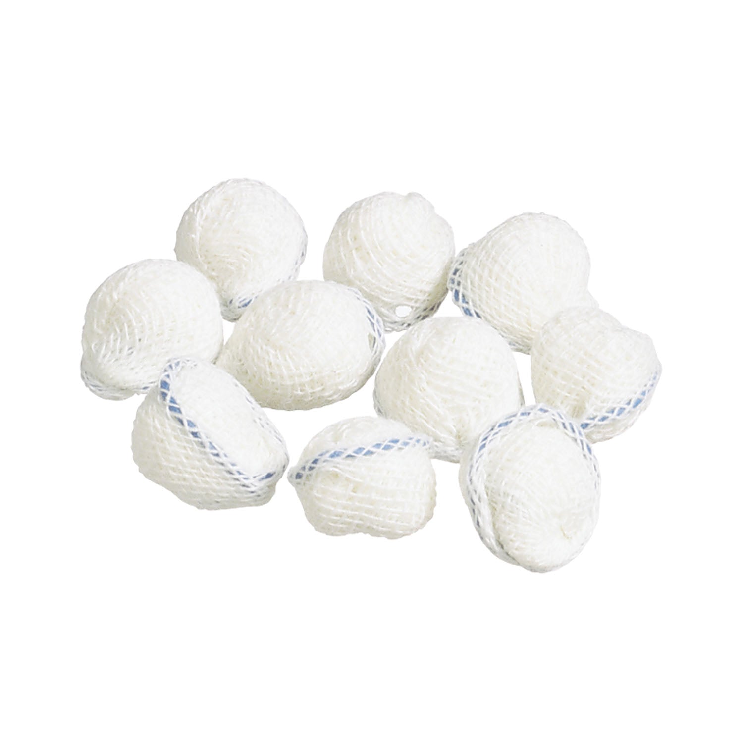 Small, firm gauze sponges for dissection or absorption in delicate surgical procedures. Locked-in X-ray detectable element.